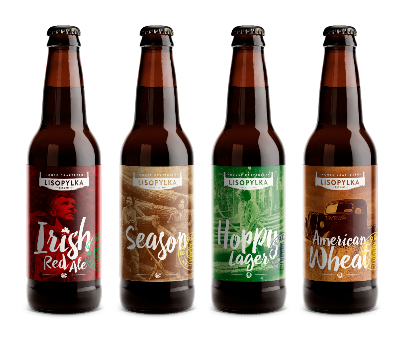 The design for craft beer Lisopylka labels based on the use of Vintage photos with loggers and their families. The beer’s name is written by free brush. The sides of the label follow the sawtooth shape as an element of the logo.